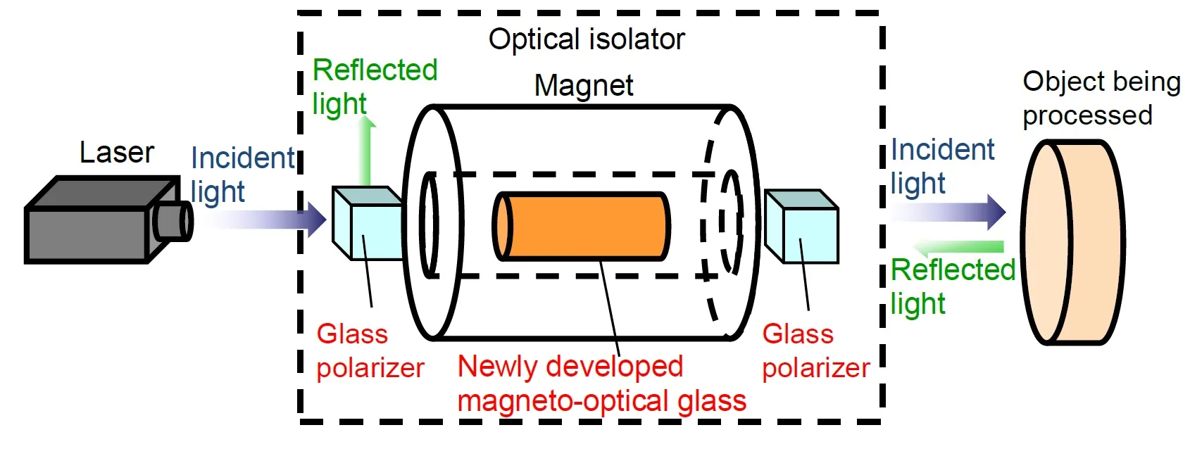 Nippon Electric Glass Co., Ltd. (Head Office: Otsu City, Shiga Prefecture, President: Motoharu Matsumoto) has successfully used magneto-optical glass to develop the world’s smallest optical isolator for high power fiber lasers. The newly developed magneto-optical glass has approximately twice the magneto-optical performance of conventional materials, so it succeeded in creating higher performance optical isolators and also achieved a great reduction in size.