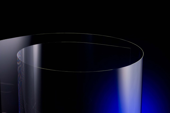 This bendable glass achieves flexibility by being ultra-thin. With a thickness of 200µm or less, it is exceptionally lightweight, and at under 100µm, it can be rolled up, enabling roll-to-roll processing for improved delivery efficiency. It maintains the excellent properties of glass, such as heat resistance and gas barrier properties, making it a promising material for the development of new devices that were previously unachievable.