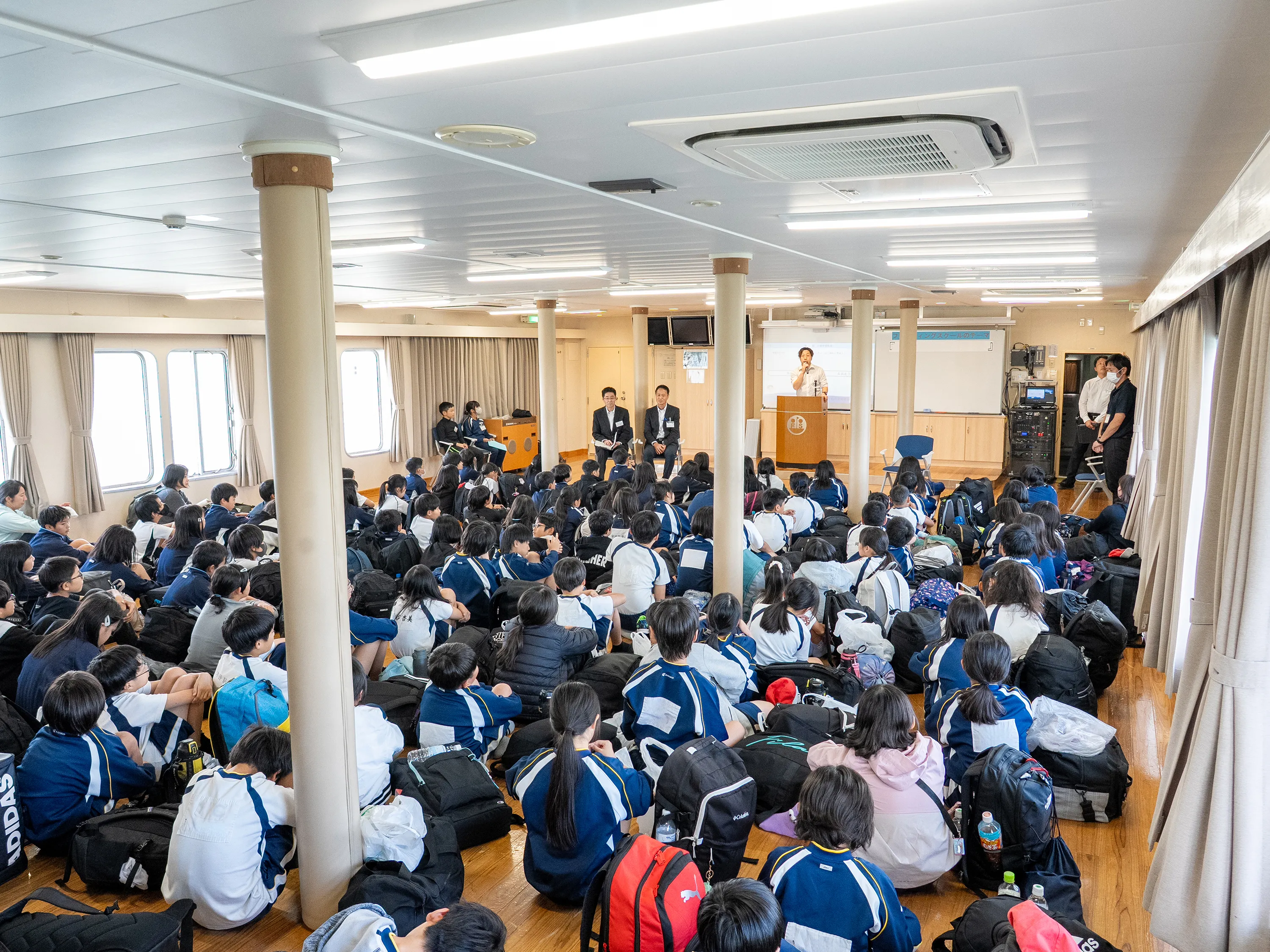 「うみのこ」では、異なる学校の子ども達が同じ班になり、活動を共にします。船の中での約束とされているのが、「あんぜん」「あいさつ」「あとしまつ」の“3つの「あ」”。この約束を意識しながら過ごすことで、互いのことを思いやり、気持ちよく過ごすための姿勢が育っていきます。