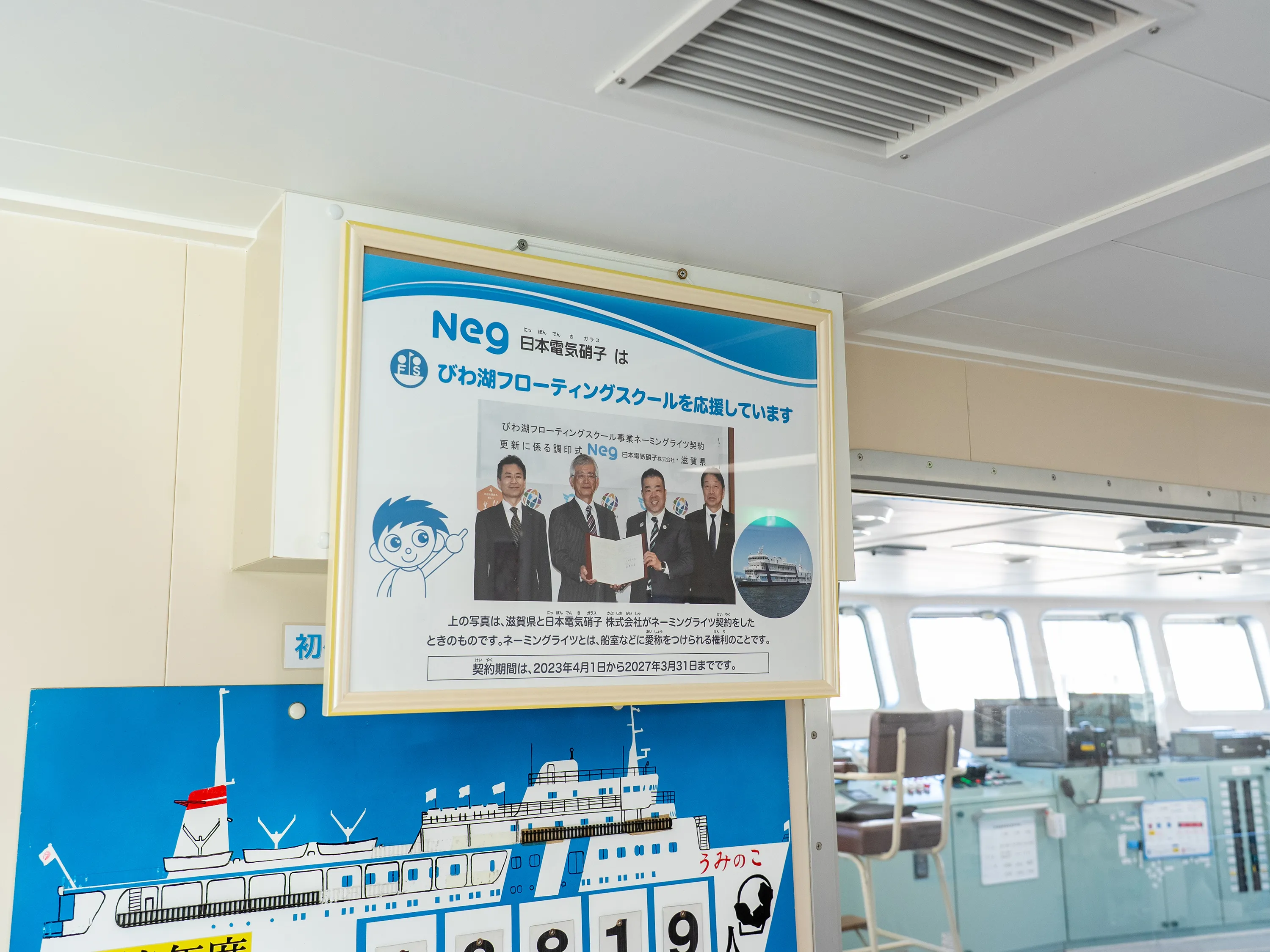 その後、滋賀県がネーミングライツパートナーを募集した際にもNEGは賛同し、2019年度から契約を開始。現在は年間200万円の支援を続けており、学習に使う備品や機材の整備など、「うみのこ」の運営に幅広く活用されています。船内の多目的室には「Negルーム」の名称がつけられ、子ども達の学びの場として使われています。